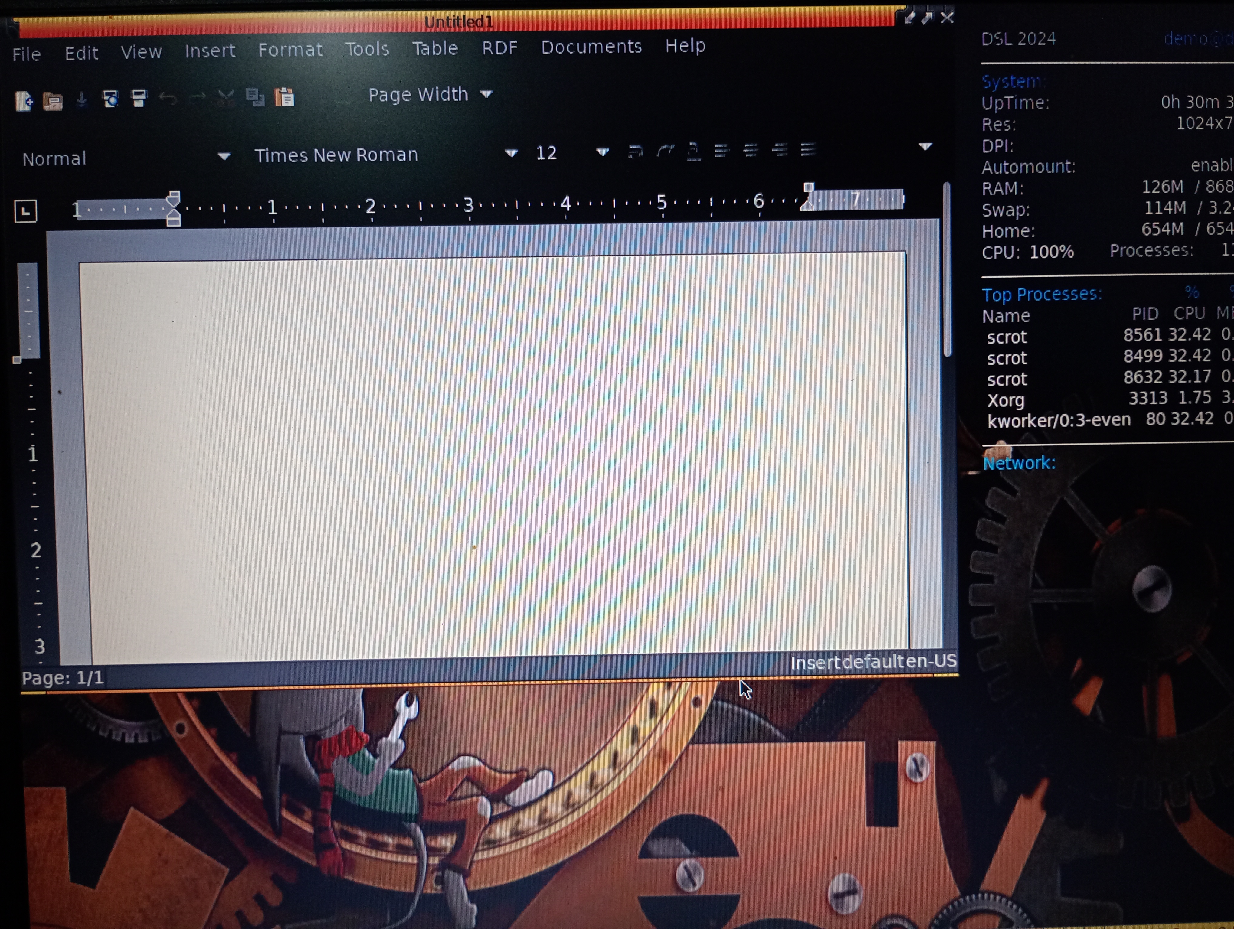 Za svrhu prezentacije distroa, testiranje sam uradio na laptopu starom preko 15 godina. AMD Turion, procesor sa jednim jezgrom, 1 GB ram memorije.
