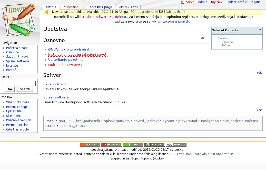 Još uvek proučavam, pa nisam siguran koliko se može meriti sa MediaWikijem. Ali jednostavan je i za Wiki početnike, a deluje kao ok rešenje.