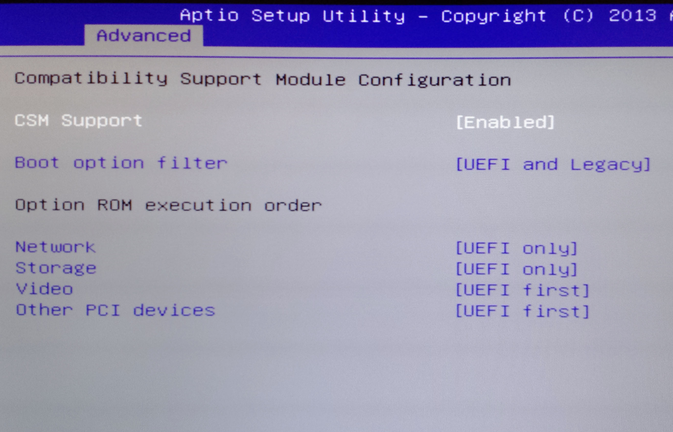 Šta ti je postavljeno u "CSM Configuration" u BIOSu za "CSM Support" i "Video" (strana 21 uputstva)?