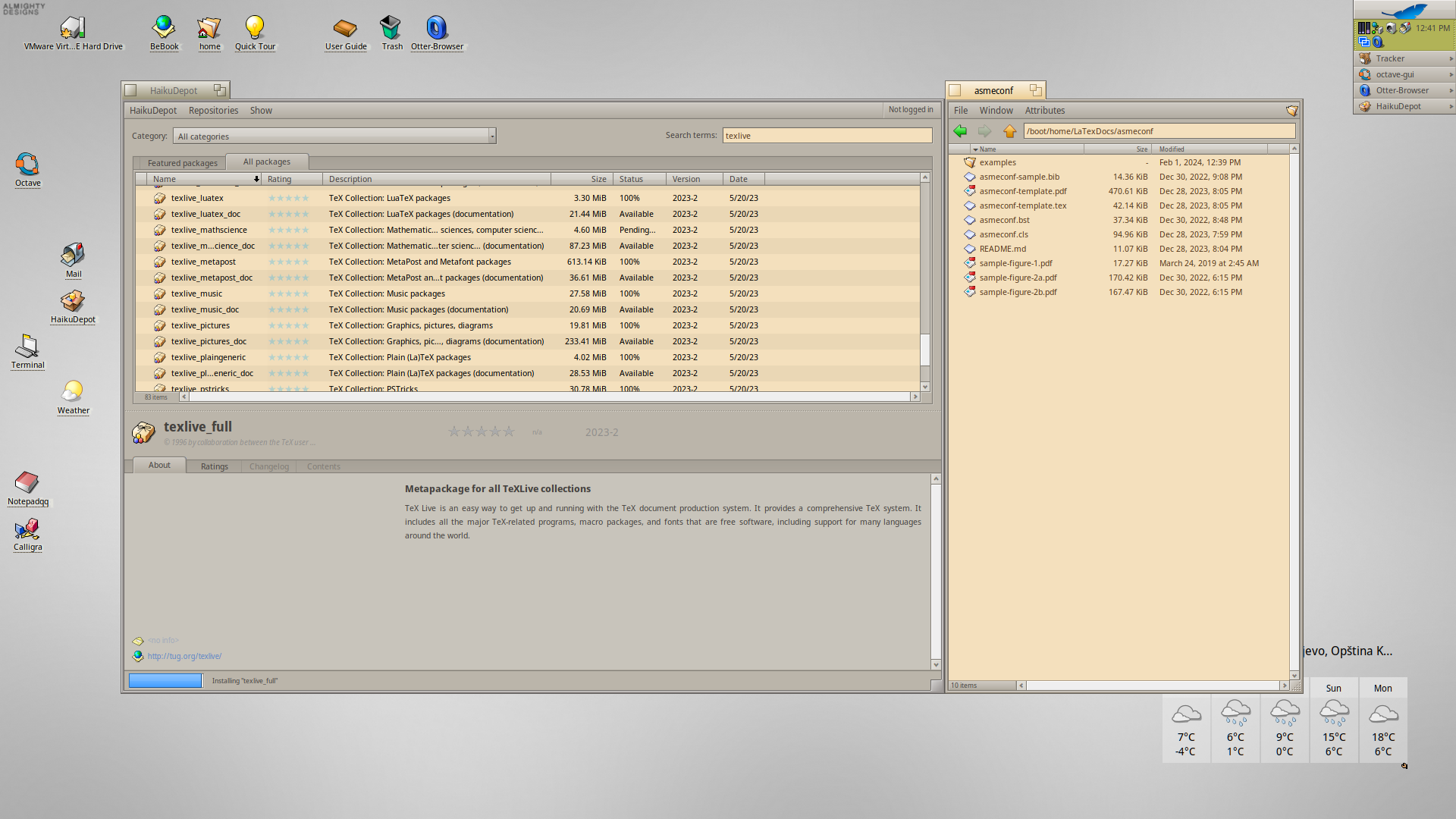 Haiku radi jako fino u virtualnim mašinama već dugo vremena. Radi ok i na pravim mašinama. Za razliku od nekih drugih alfa/beta operativnih sistema (ReactOS?) Haiku je jako lepo radio čak i kad je bio u alfi. U VM. Na pravoj mašini (Thinkpad x230) sam probao jedno od beta izdanja i radio je ok. Nisam se puno bavio njime, ali prvi test je prošao bez većih problema. A i dolazi sa gomilom aplikacija pa je upotrebljiv. Nisam puno testirao podršku za hardver.mpman wrote: ↑01 Feb 2024, 13:46Као што се може видети, овог пута није у питању баш Линукс. У питању је виртуелна машина, али за сада на њој ради прилично стабилно. Није било рушења програма или рушења самог система. Имам у плану да пробам да покренем на правом хардверу и пробам да га као таквог користим неко време. Пробао сам и раније, али је проблем био у томе што сам имао проблема са WiFi катицом и што је генерално подршка са веб прегледачима... Па рецимо да је ограничена. Али делује фино.