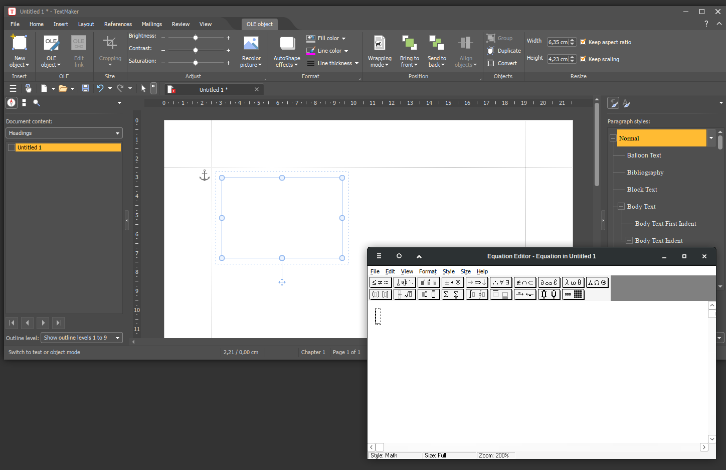 Bacio sam pogled na Help i vidim da je MathType Windows OLE objekat druge kompanije (nije u vlasništvu SoftMaker-a). Na forumu u poruci iz 2021. Softmaker-ovci kažu da je zamena za MathType u planu, ali ni u SoftMaker Office-u 2024 ova opcija još uvek nije implementirana.
