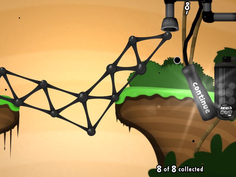 World of Goo je sjajna slagalica koja je probrala sjajne ocene na opštim gejming sajtovima. Ova igra je proizvod nezavisnog studia 2d boy koga čine duo nekadašnjih EA zaposlenih koji su igru razvijali u slobodno vreme u toku 2 godine. Teško mi je da opišem kako se tačno igra, ali postoji besplatni demo koga možete isprobati. Ako se dobro sećam, posle prvih nekoliko nivoa igra postaje dosta teža. Ne sećam se ni da li sam prešao demo. Ali koncept je zanimljiv i po mom mišljenu vredi probati.