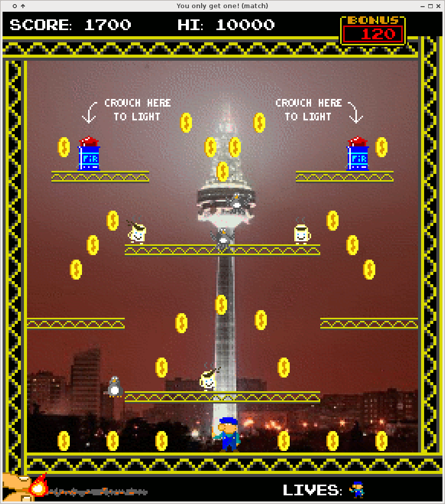 You only got one match je zanimljiv retro platformer napisan u Pythonu korišćenjem PyGame. Igru je napravio mali porodični tim uključujući 11-godišnju ćerkicu jednog od programera koja je pomogla razvoju igre svojim crtežima. Inače igra je napravljena za takmičenje u pravljenju igara Ludum Dare. Objavljena je pod GPL3. Grafika i podaci su objavljeni pod CC BY-NC-ND.