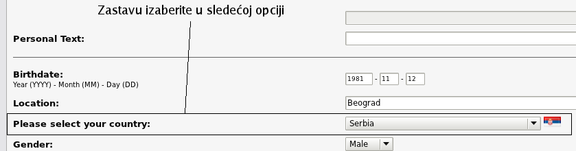 Instaliran je dodatak koji omogućava da postavite zemlju iz koje dolazite. Nalazi se u opcijama profila. Kratko uputstvo:
